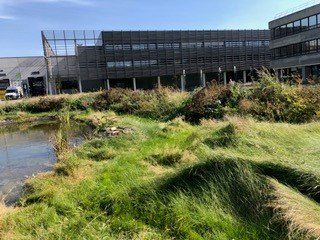Souvent les abords des bureaux se résument à des pelouses tondues et quelques parterres sans vie.